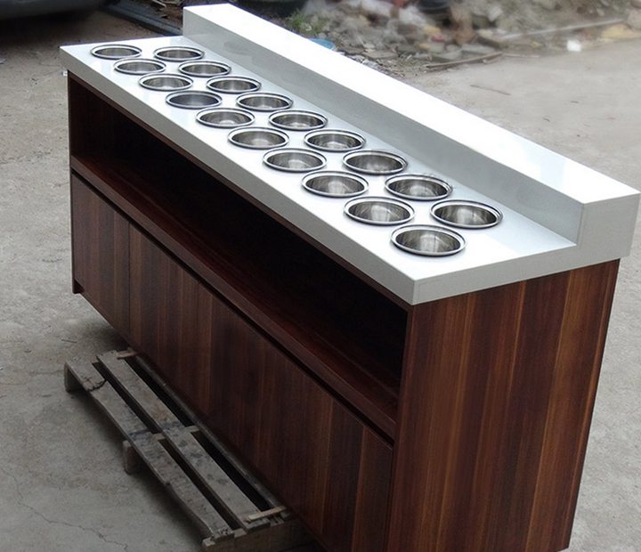不同醬料臺有不同的特色,本廠(chǎng)家有實(shí)木醬料臺,大理石醬料臺,玻璃醬料臺等各式醬料臺。醬料臺可以根據您火鍋店的裝修環(huán)境做成不同的色調,讓您的餐廳品味高雅,時(shí)尚,大氣。