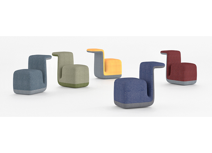 Pipe造型靈感源于煙斗,通過(guò)軟包的一體包裹和拼布的處理方式賦予了這個(gè)“煙斗”更加豐富的色彩變化,其俏皮可愛(ài)的外形予使用者親近感,在空間中點(diǎn)綴色彩,活躍氣氛。